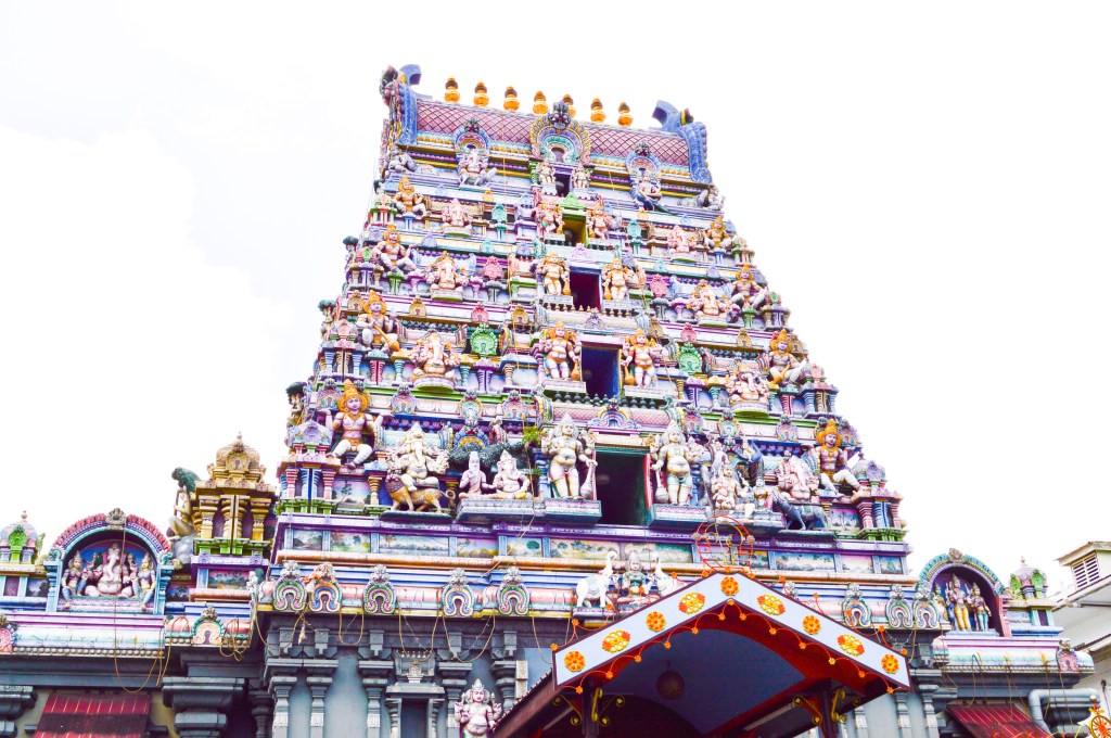 Named after the Hindu god of prosperity and safety, Lord Vinayagar, the temple is immediately eye-catching. Colorful figures of various Hindu deities are adorned throughout the multi-colored structure.