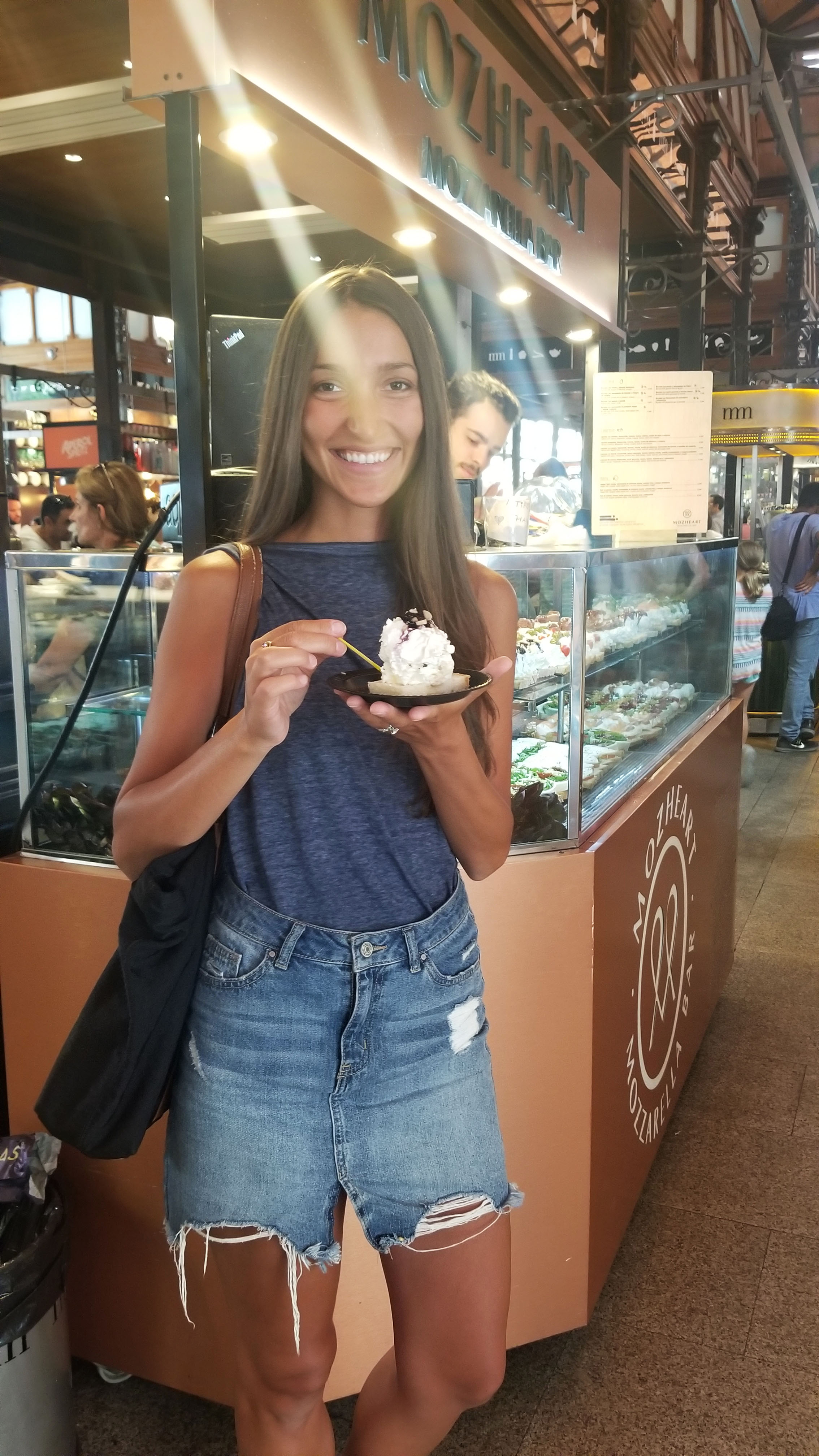 Each time my husband and I visit Madrid, one of our first and last stops is Mercado de San Miguel, a buzzing food market enclosed in glass. It is here where vendors sell various high-end tapas and tasty treats, giving home to a community of locals and international tourists who unite to enjoy various scrumptious bites. There are wide ranges of meats and cheeses, seafood, stuffed olives, desserts, and healthy samples of fruit and juices using fresh ingredients from around the country. The market sells various alcoholic beverages in its bars as well, including sangria, which hues seem to match the colors of Spain’s architecture. When you order a glass of sangria, or make any other purchase, you can carry it with you as you meander through the market.