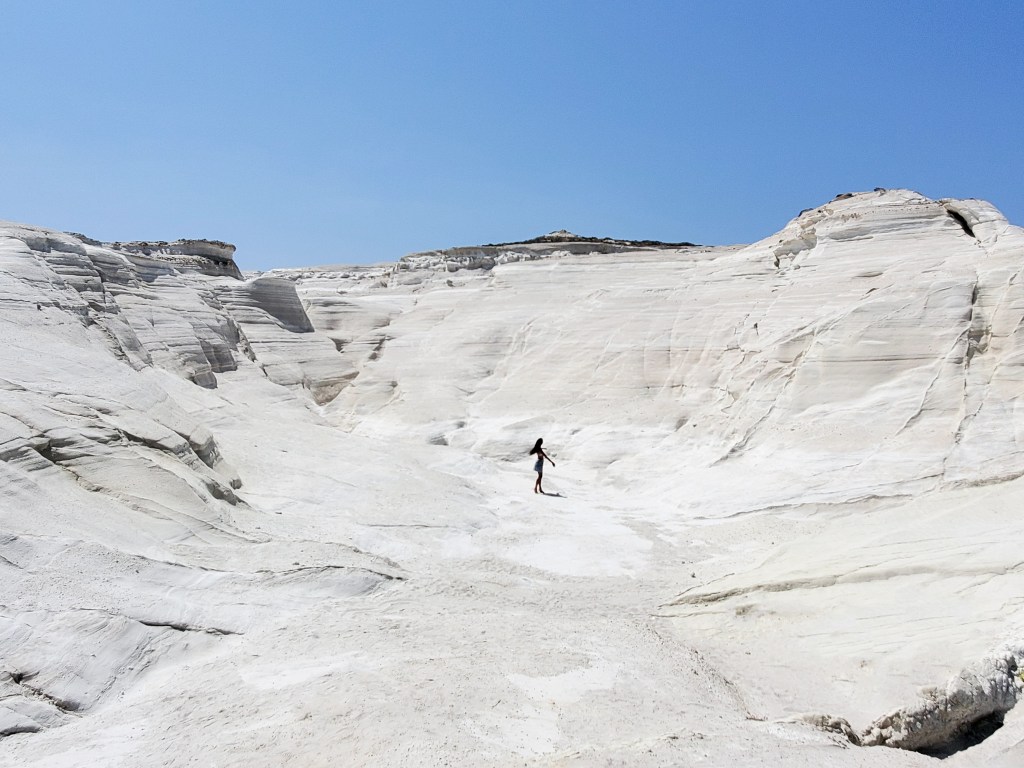 Often compared to a moonscape, Sarakiniko is a vast beach composed of volcanic rock morphed into abstract shapes. It is a museum of natural beauty,